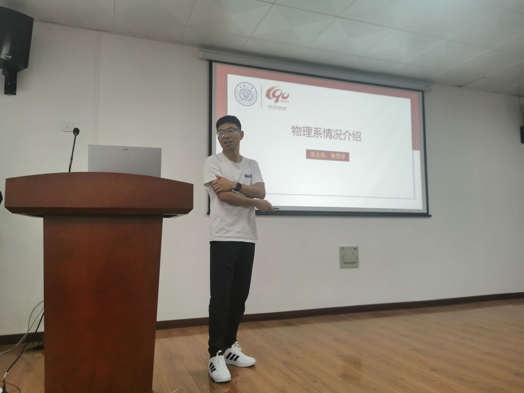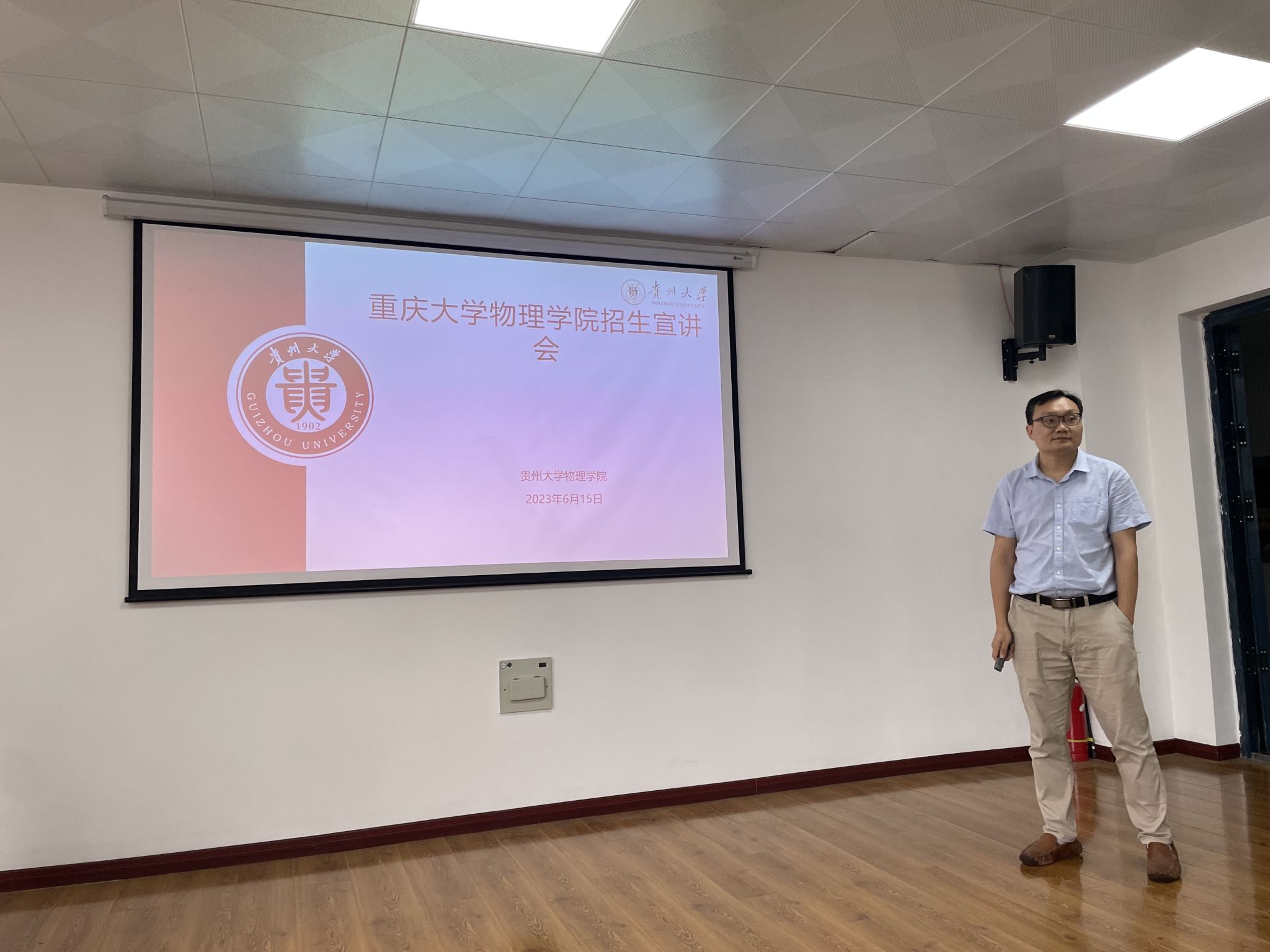 为加强研究生招生宣传力度,提升研究生生源质量,2023年6月15日-16日,我院主管研究生教育的副院长胡自翔教授,物理系主任秦思学教授和西南理论物理中心方向负责人李昕教授赴贵州大学和贵州民族大学进行了两场招生宣传。宣讲会由贵州大学开云online(中国)党委书记王更生教授和贵州民族大学物理系主任王声权教授主持。两次宣讲会吸引了近200名大三物理系的同学参加。胡自翔副院长从宏观经济形势、地区政策优势、学院发展态势和招生政策,校园生活环境等方面对我院物理学科做了整体介绍,并对我院暑期夏令营等活动进行了相关介绍;秦思学教授对物理系的师资和研究情况进行了详细的介绍,并对高能物理和粒子物理研究团队进行了详细的讲述;李昕教授对我院西南理论物理中心的发展和相关团队做了全面细致地介绍,并对天体物理与宇宙学方向进行了科普讲解和宣传。最后的答疑环节中,学生就推免生复试、奖学金、宿舍环境等问题踊跃提问,老师们一一解答并鼓励各位同学积极备考。