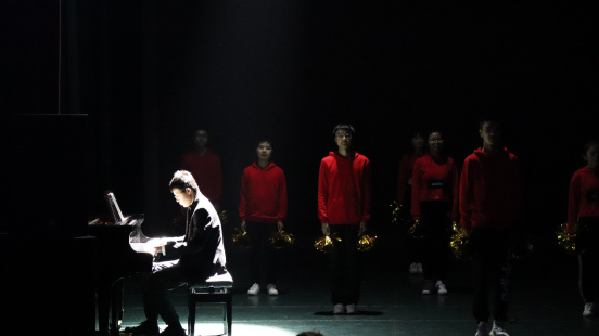 一束闪耀的聚光灯下,一双修长的手灵快地敲打着琴键,在一首铿锵欢跳的钢琴曲中,迎新晚会逐渐拉开帷幕。