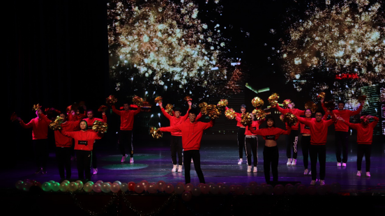 曲闭,灯光亮起,浮现出办公室和组织部小伙伴们充满活力的身形,他们用他们的激情与蓬勃朝气为我们带来开场舞《物动青春》,台下观众掌声不断,彻底点燃了晚会的热烈气氛。