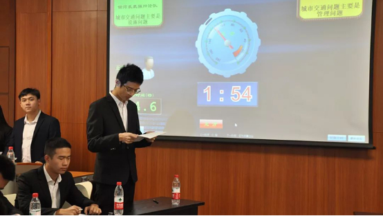 随着社会经济的发展,我们进入了一个多元化的新时代,便利性也随之提高,生活水平也逐渐提升。逢年过节我们可以去我们想去的地方,见想见的人,欣赏期待的风景,然而,国庆等节假日堵塞成灾,一辆辆车排列起的长龙占据了一条又一条的主干道!探究这个问题的本质以及如何切实地解决这个问题成为了当务之急。决赛中,来自“银河系最强辩论队”的谢志鹏,何鉴伦,吴嘉荞,赵垣丞,蒋昀昊(正方)和来自“咋说都队”的王俊灵,庞佑,韩俊伟,何勉 ,孙翰文(反方)针对“城市交通问题主要是设施问题/管理问题“进行了深刻讨论。