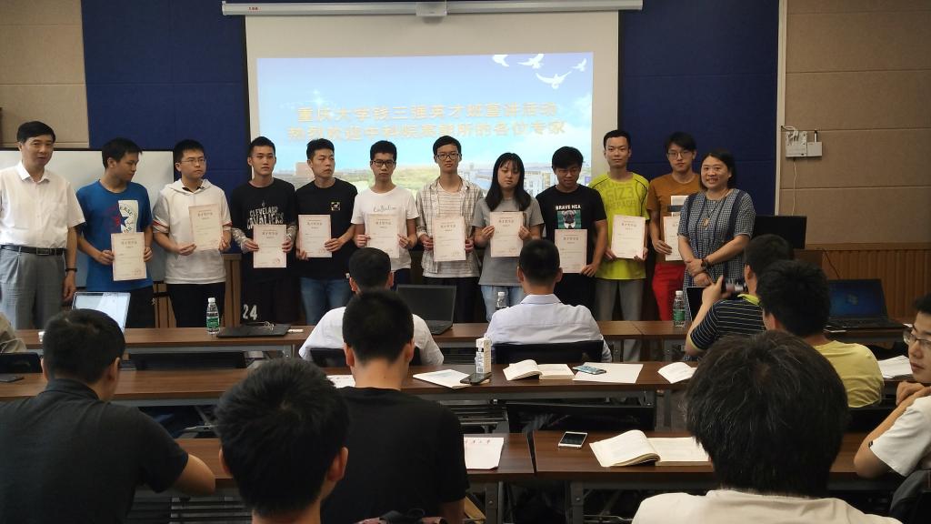 重庆大学开云online(中国)钱三强英才班由重庆大学开云online(中国)与中科院高能物理研究所联合承办。2018年5月19日上午,开云online(中国)首届钱三强英才班奖学金颁奖仪式在LE201顺利举行。参与此次颁奖仪式的有中科院高能所研究员朱科军、研究员张俊荣、研究员章志明、研究员孙胜森、研究员刘宝东、研究生教育处老师保增宽、开云online(中国)党委副书记萧倩、英才班班主任李昕、副班主任王瑶以及2015级、2016级“钱三强英才班”全体同学,仪式由王瑶老师主持。