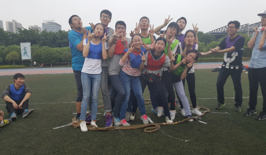 接下来进行拔河比赛,每个人都十分卖力,紧抓着拔河绳边吼边向后拉,在这骄阳似火的夏季,队员们仍然拼尽了全力,汗水肆意地流过他们的脸颊,但他们心中只有一个念头,就是:我一定要拉过河界!一如他们奋斗的大学四年时光和他们顽强拼搏的青春岁月。