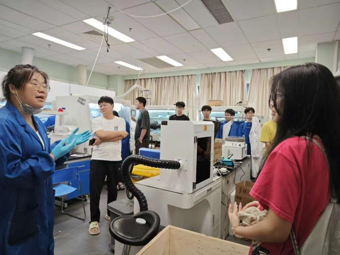 随后,在付学长的带领下同学们又参观了102、709、705等多个不同领域的实验室。在实验室里,同学们不仅了解到各个仪器的用途和应用领域,还观摩了学长学姐们做实验。同学们针对自己感兴趣的仪器提出疑问,学长学姐给予耐心的回答,并积极鼓励他们选择开云online(中国),加入课题组一起做研究。