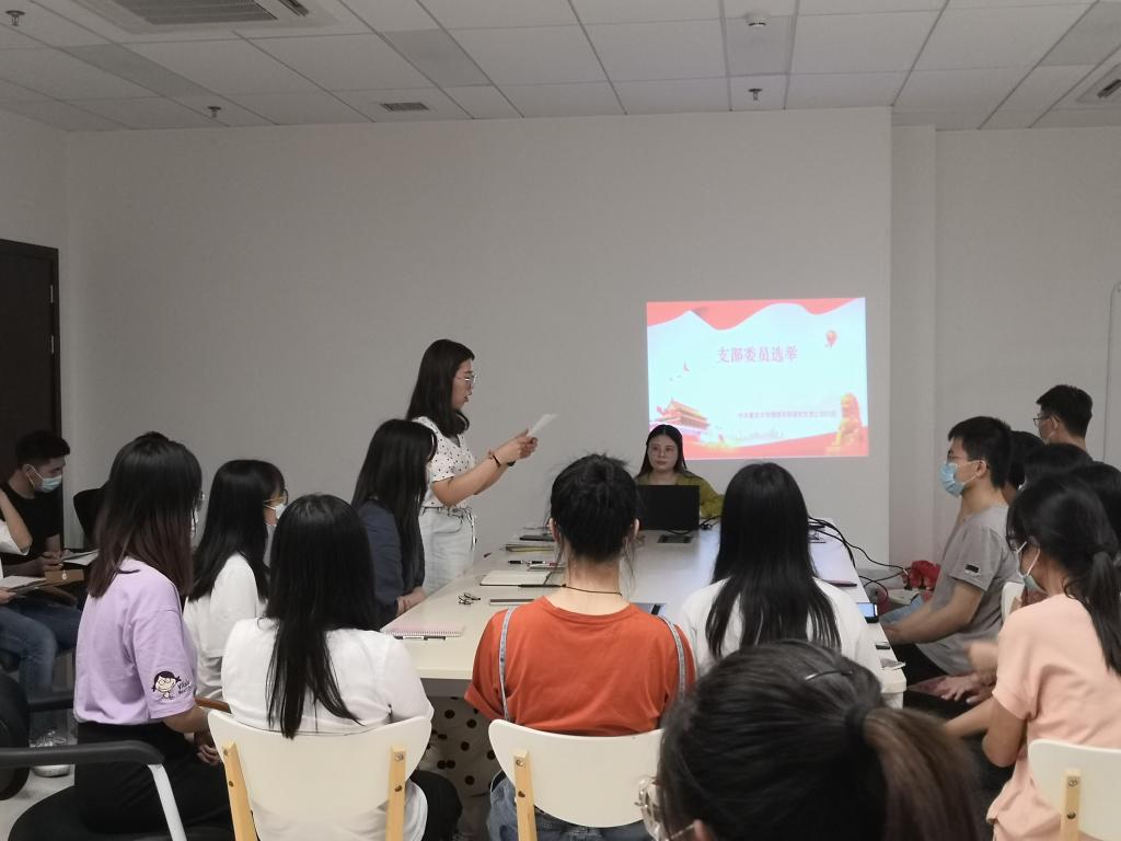 在投票环节中,支部严格按照公平、公正、公开的原则,由监票人和计票人唱票并宣读结果,经党员大会无记名、差额投票,蒋孟琴、饶敏刘丹阳三名同志当选为党支部新一届委员会委员。会后,新一届支部委员会召开了第一届支委会,选举产生了书记,并对支委进行分工。蒋孟琴担任支部书记,饶敏担任组织委员、刘丹阳担任宣传委员。