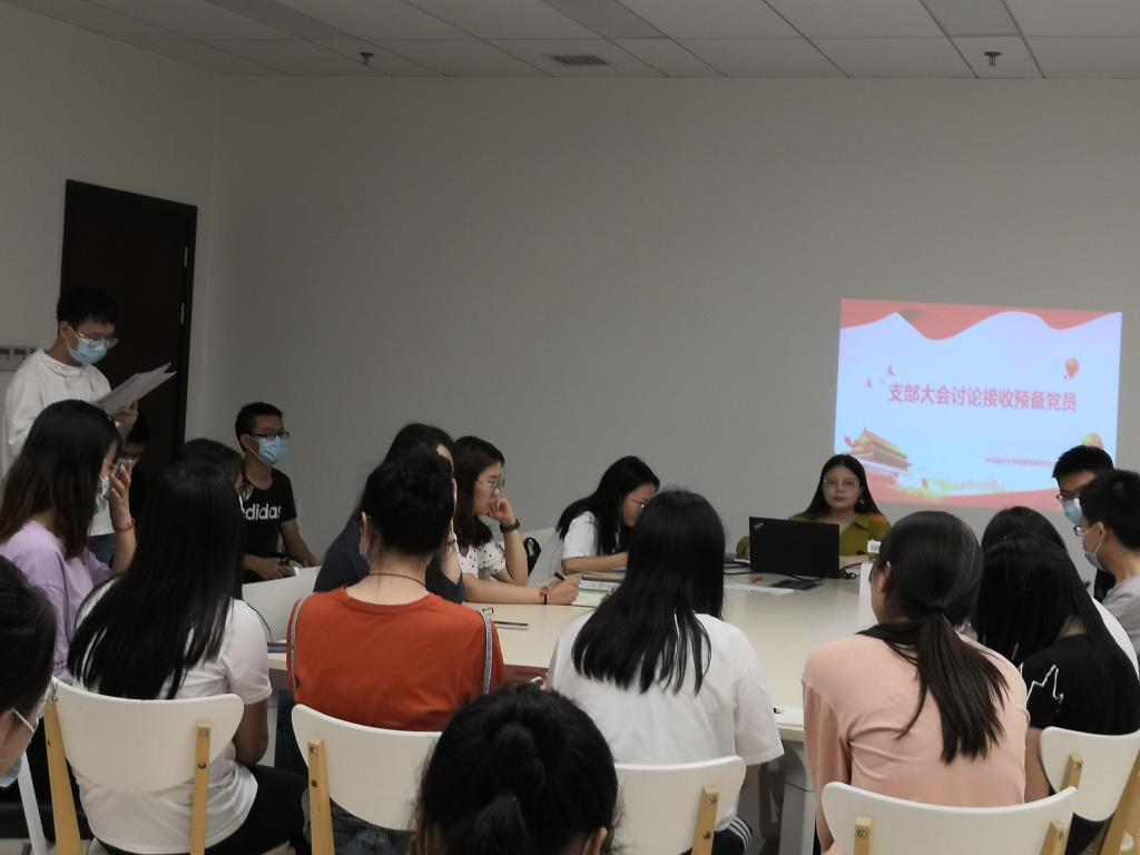 随后,会议进入了第二项议程,党员发展大会,发展党员严格按照党员发展程序,经过党支部的严格考察和培养,向宵和谢鑫两位入党积极分子被列为发展对象,两位发展对象依次宣读了《入党志愿书》,并向组织汇报了自身对党的认识以及入党动机,表达了对党的向往,对党的忠诚,以及不忘初心跟党走的决心。随后,各对应入党介绍人分别介绍发展对象的现实表现,以及群众对两位发展对象的学习、工作等方面进行评价。最后,大会通过了监票人、计票人、唱票人的名单,正式党员对谢鑫同志和向霄同志进行了投票表决,大会一致同意接收谢鑫、向霄两名同志成为中共预备党员。