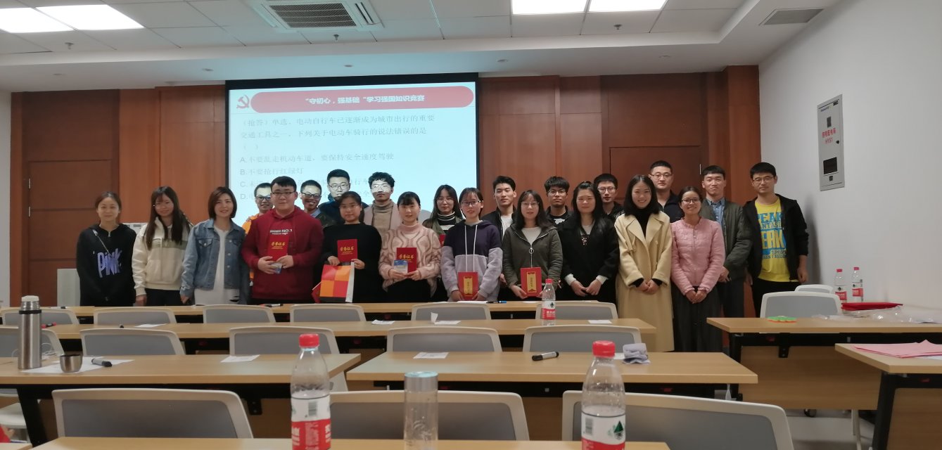 活动由研究生四支部书记邹润玲主持,首先余书记为大家介绍和阐述了这次“不忘初心,牢记使命”主题教育的意义和重要性,从这八个字出发引导学生们结合自己的工作学习应该如何做到不忘初心,并对大家提出了殷切期望。随后,主持人宣读了比赛规则,将根据党员们的总分数依次排名,评出个人和团体的一二三等奖。在比赛过程中,各位党员可真是针尖对麦芒,旗鼓相当,回答问题相当踊跃。尤其是在第二轮抢答环节中,我们是以站起来的方式进行抢答,在很多次抢答过程中,大家几乎都是同时站起来的,并且都能回答正确,其中没答完一道题主持人会为大家做科普性解析,不仅仅是完成一次答题和比赛,而是在此过程中强化了党员们的知识基础。