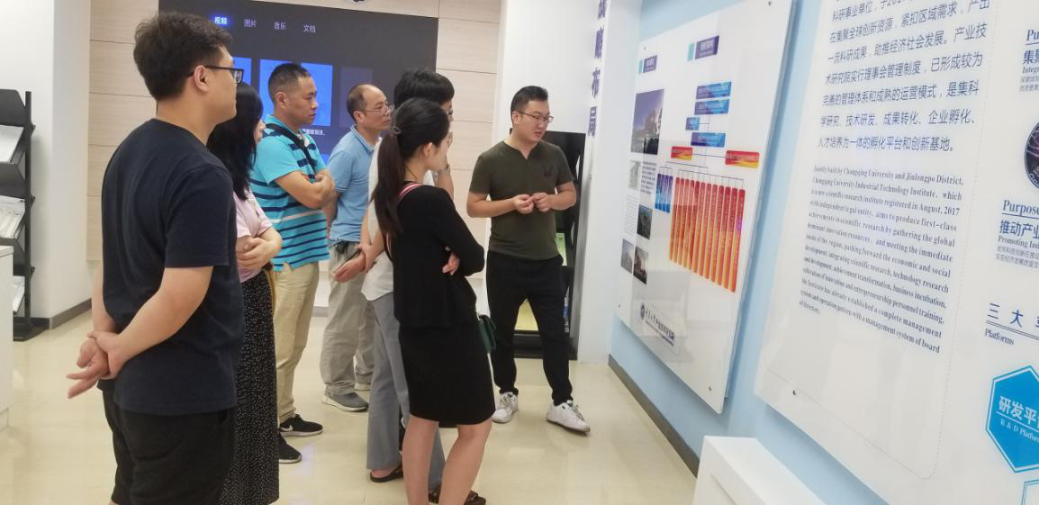 6月28日上午由重庆大学产业技术研究院工作人员带领参观学习高校科技孵化及技术成果转化。重庆大学产业技术研究院是由重庆大学和九龙坡区共建的集科学研究、技术研发、成果转化、企业孵化、人才培养为一体的新型科研事业单位,2017年8月注册成立,在中国共产党的领导下,产出一流科技成果,推动社会经济发展。这次参观让我们深刻体会到习近平总书记说的“创新是引领发展的第一动力,是建设现代化经济体系的战略支撑”。重庆大学产业技术研究院研发的肺功能测试仪最小能测两公斤婴儿的肺功能及肺部发育情况,测量精度已达到国际领先水平。研发的微生物加固土,绿色水泥等对环境保护做出很大的贡献。