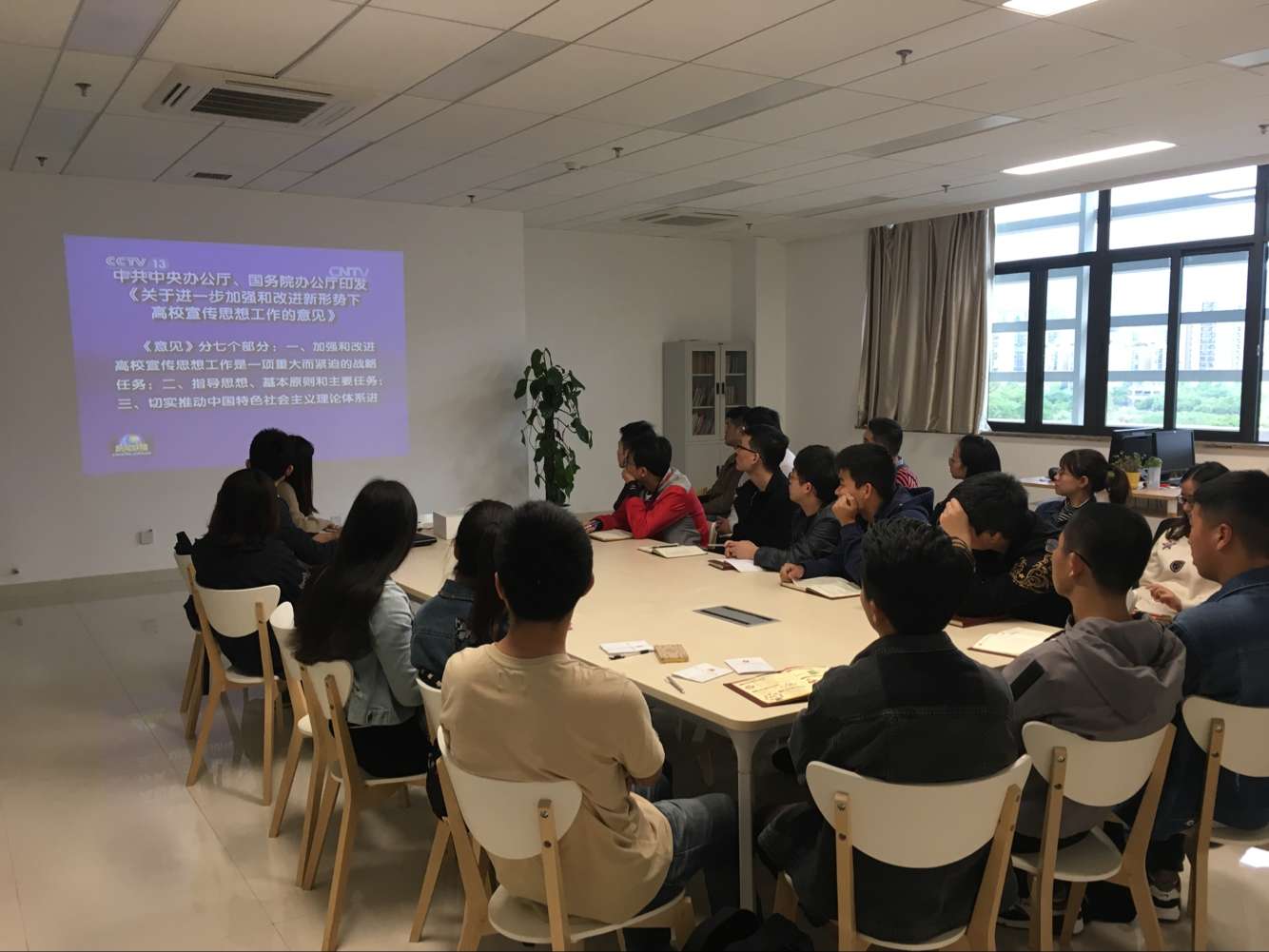 2017年4月20日下午2:30,开云online(中国)本科第一党支部在理科楼LE601组织支部党员学习中央办公厅、国务院办公厅印发的《开云登陆入口进一步加强和改进新形势下高校宣传思想工作的意见》并观看中央宣传部、中央组织部、教育部负责人就《开云登陆入口加强和改进新形势下高校思想政治工作的意见》答记者问的相关视频资料。