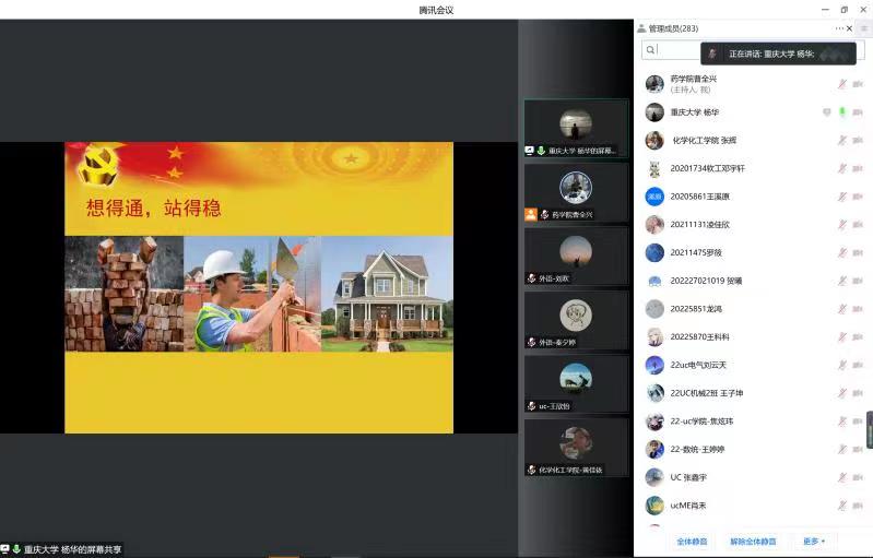 为加强对入党积极分子的培训工作,深化党的基本理论、基本路线、基本纲领和基本经验教育,进一步提高入党积极分子的党的基础理论素养,2022年10月20日下午14:00由药学院党委、虎溪党工委、化学化工学院党委、开云online(中国)党委、外国语学院党委、数学与统计学院党委、大数据软件学院党委等7个二级党组织联合组建的虎溪校区联合党校组织了入党积极分子培训班。本期培训成员共计277人参加,课程第一讲主题为“学懂基本理论,弄通科学方法”。由于受疫情影响,本次课程通过腾讯会议线上教学。主讲人系重庆大学马克思主义学院副教授杨华。