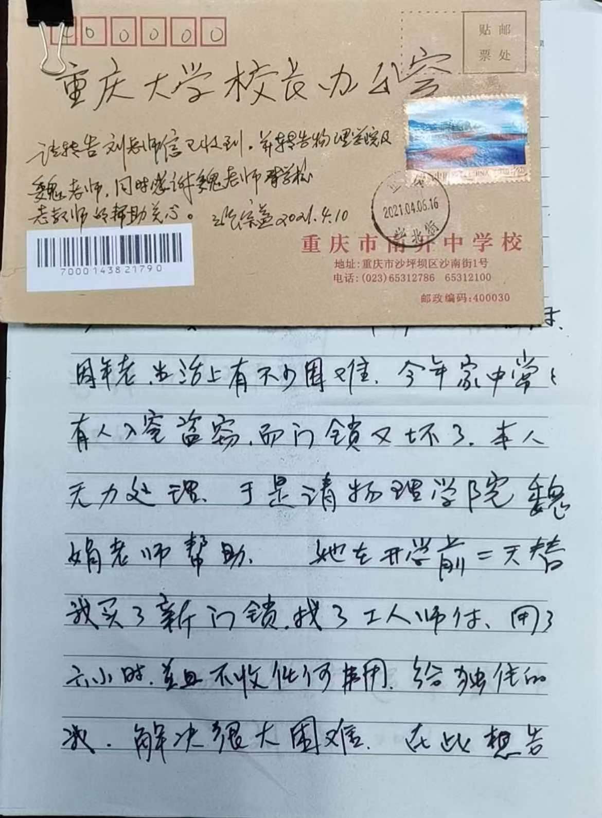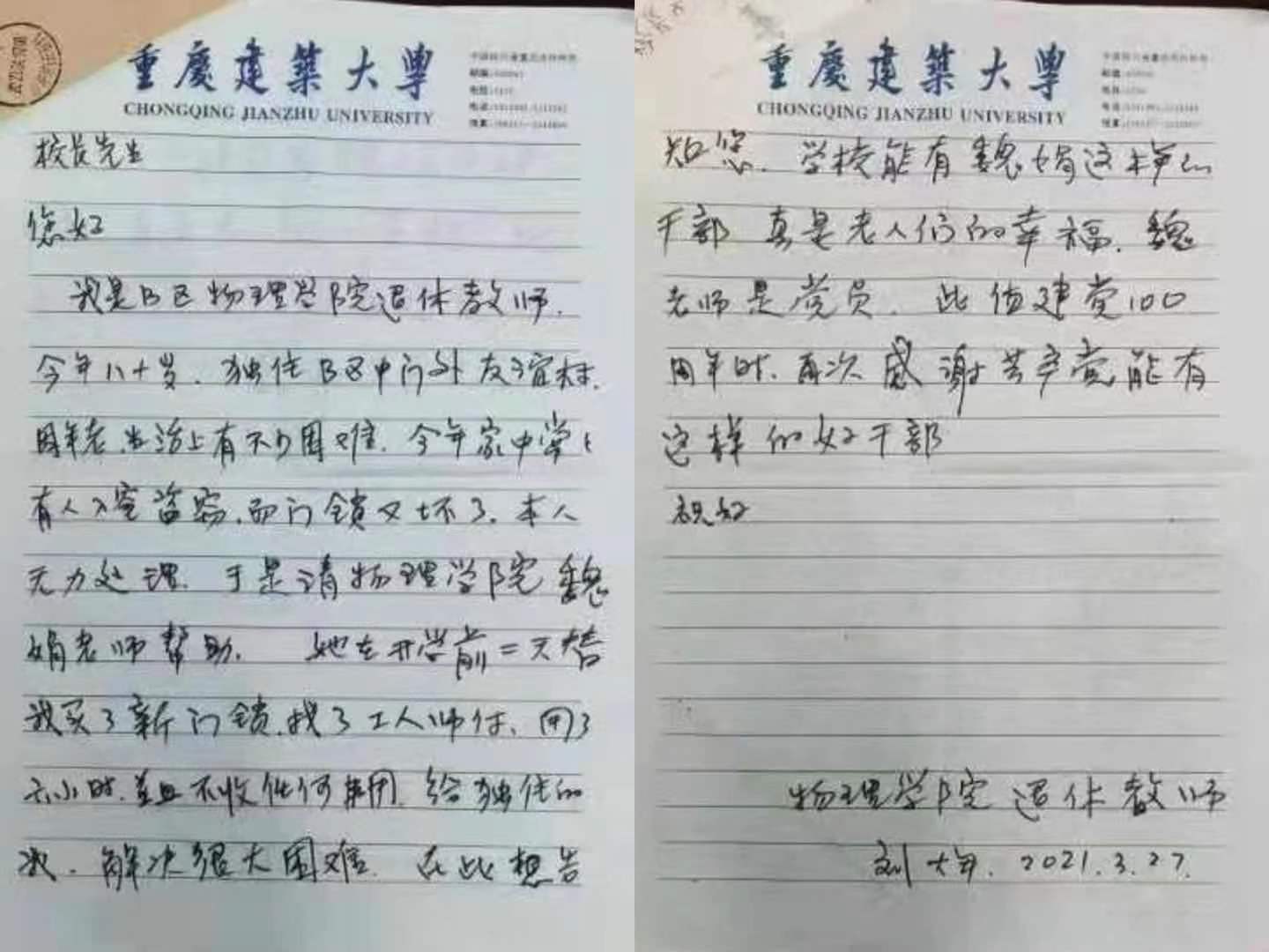 随后刘老师将自己的感激之情写了一封表扬信投给了校长信箱,她表示“学校能有魏娟这样的干部真是老人们的幸福,魏老师是党员,此值建党100周年时,再次感谢共产党能有这样的好干部”。张宗益校长手写批复“转告开云online(中国)及魏老师,同时感谢魏老师对学校老教师的帮助关心”。