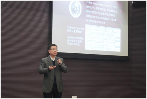 作为重庆大学彭桓武书院的首任名誉院长,蔡荣根院士为到场的师生们介绍了彭桓武先生的治学精神和学术思想。蔡院士分享了彭桓武先生的生平,以及本人与彭桓武先生在科学研究和日常生活中交往的点点滴滴,深刻阐释了彭桓武先生的爱国情怀、学术思想、治学精神和高尚人格。他表示,彭桓武先生的治学精神、高尚理想以及淡漠名利的品质值得后人承载,彭桓武书院作为拔尖创新人才培养基地,一定要为国家培养出具备彭桓武先生那种爱国奉献、科学求真精神的创新拔尖人才。