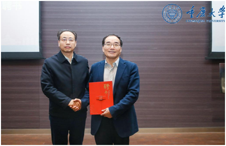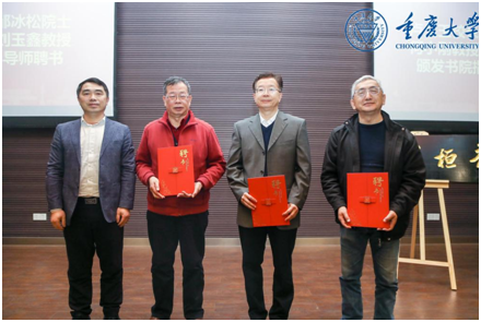 随后,王树新校长为蔡荣根院士颁发了彭桓武书院名誉院长聘书。卢义玉副校长为邹冰松院士、何小刚教授、刘玉鑫教授颁发了书院指导导师聘书。