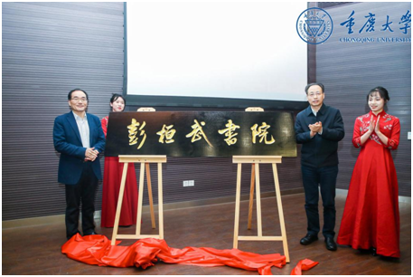 王树新校长和蔡荣根院士为彭桓武书院揭牌。书院揭牌标志着重庆大学彭桓武书院正式成立,也开启了重庆大学物理学科拔尖人才培养的新征程。