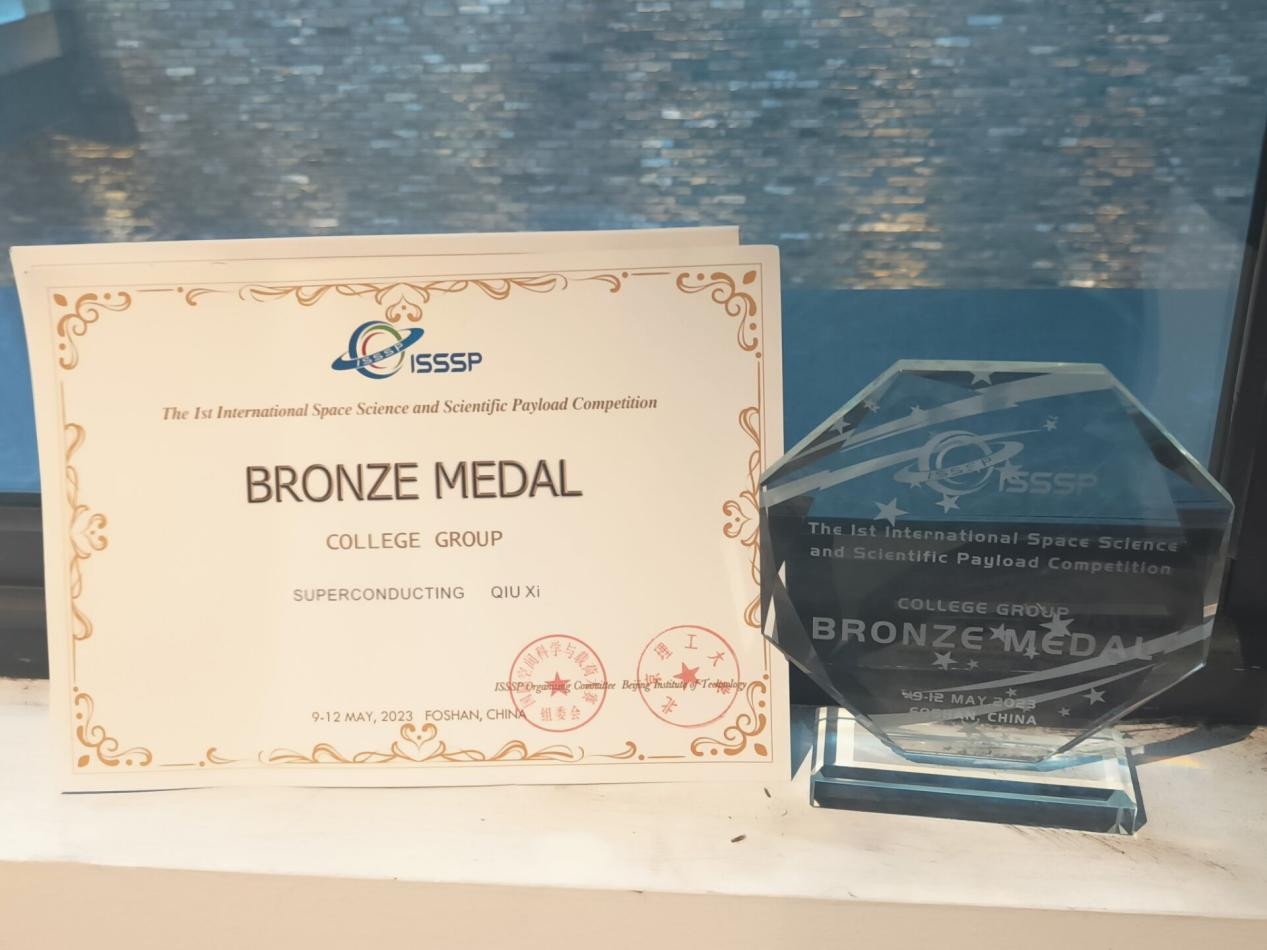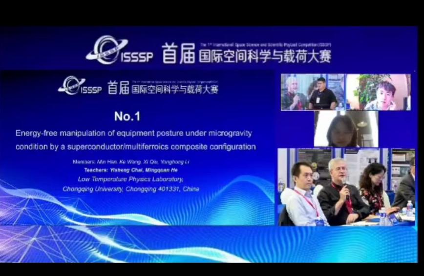在重庆大学物理学院和低温物理实验室的大力支持下,重庆大学超导队(SUPERCONDUCTING)(指导教师:柴一晟,何明全,队员:王可,韩敏,邱曦,李永红)经过近一年的精心准备,于2023年5月12日—15日在广东佛山参加了由中国电子学会、北京理工大学、国际宇航科学院、中国宇航学会、中国航天基金会主办,北京理工大学国际交流处 、北京理工大学生命学院 、中国宇航学会航天医学工程与空间生物学专业委员会 、中国电子学会生命电子学分会承办的首届国际空间科学与载荷大赛。