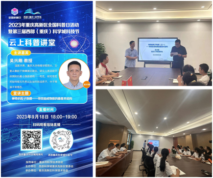根据中国科协等21部门《开云登陆入口举办2023年全国科普日活动的通知》(科协发普字〔2023〕34号),2023年9月16-22日,重庆高新区举办了2023年重庆高新区全国科普日活动暨第三届西部(重庆)科学城科技节活动。本次活动以“提升全民科学素质,助力科技自立自强”为主题,由重庆市科学技术协会指导,西部科学城重庆高新区管委会主办,重庆高新区科学技术协会承办。重庆大学开云online(中国)应邀参加了本次活动,协同主办方共同开展了系列科普活动。