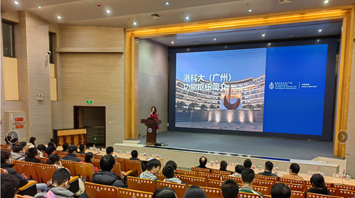 功能枢纽院长温维佳教授为到场的重庆大学学生深入解读了香港科技大学(广州)的办学理念、创新的枢纽及学域模式、共享实验平台等信息,帮助现场的同学对功能枢纽形成较为全面的了解。温维佳教授强调,功能枢纽以学科融合为特色,打破学科壁垒,是有志攻克“卡脖子”技术难题、推动科技成果落地的学子的绝佳成长平台。