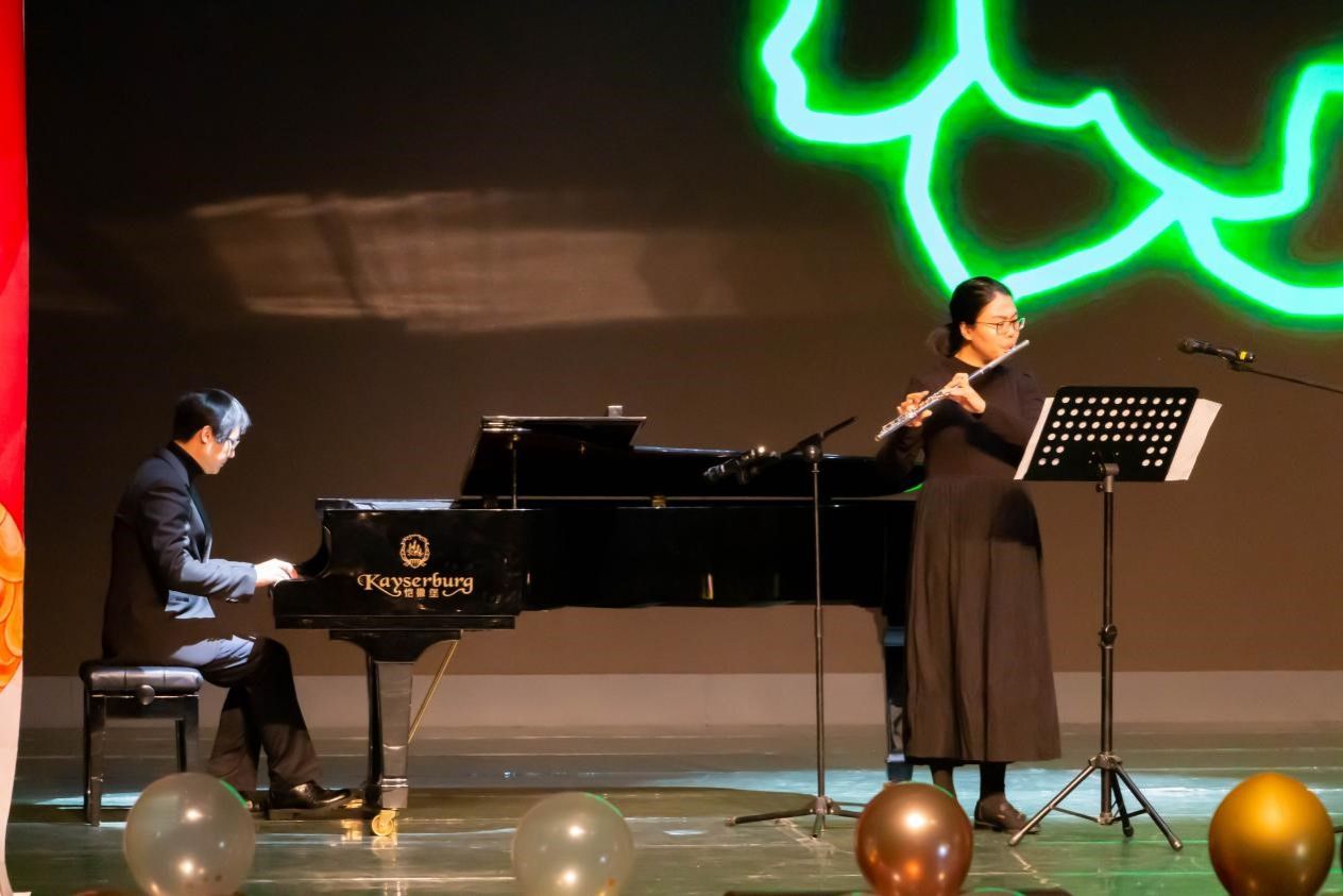 此外,晚会的特邀演出嘉宾重庆电视台时尚频道主持人周二毛、著名麻辣明星白老实为大家带来了极具巴渝特色的《戏说山城》;师生共创的琴笛合奏节目《茉莉花》以及快板《说重大》让大家感受到了开云online(中国)浓浓的师生情;艺术学院舞蹈专业同学的民族舞串烧好评如潮;歌乐相声社、说唱社的精彩节目也获得了观众们的掌声和欢呼。
