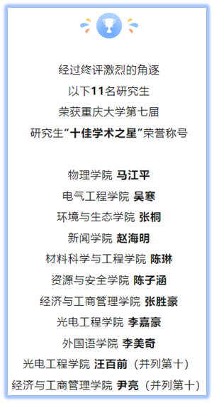图1 重庆大学第七届研究生“十佳学术之星”获奖名单