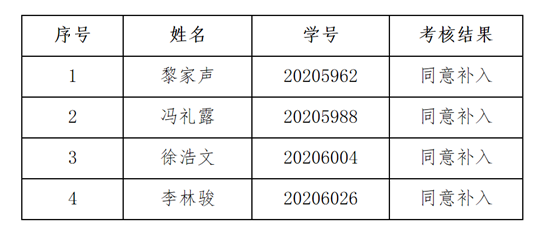 根据《重庆大学强基计划学籍管理实施细则(试行)》的相关规定,2021年9月17日,经学院组织考核小组对申请补入的学生进行综合面试选拔,结合强基计划的培养目标,综合考察学生的兴趣志向、学业表现、学术潜力以及心理素质等情况,确定选拔补入强基计划的学生名单, 现予以公示。选拔补入的学生应按照强基计划相应专业相应年级的培养方案进行后续课程的修读。