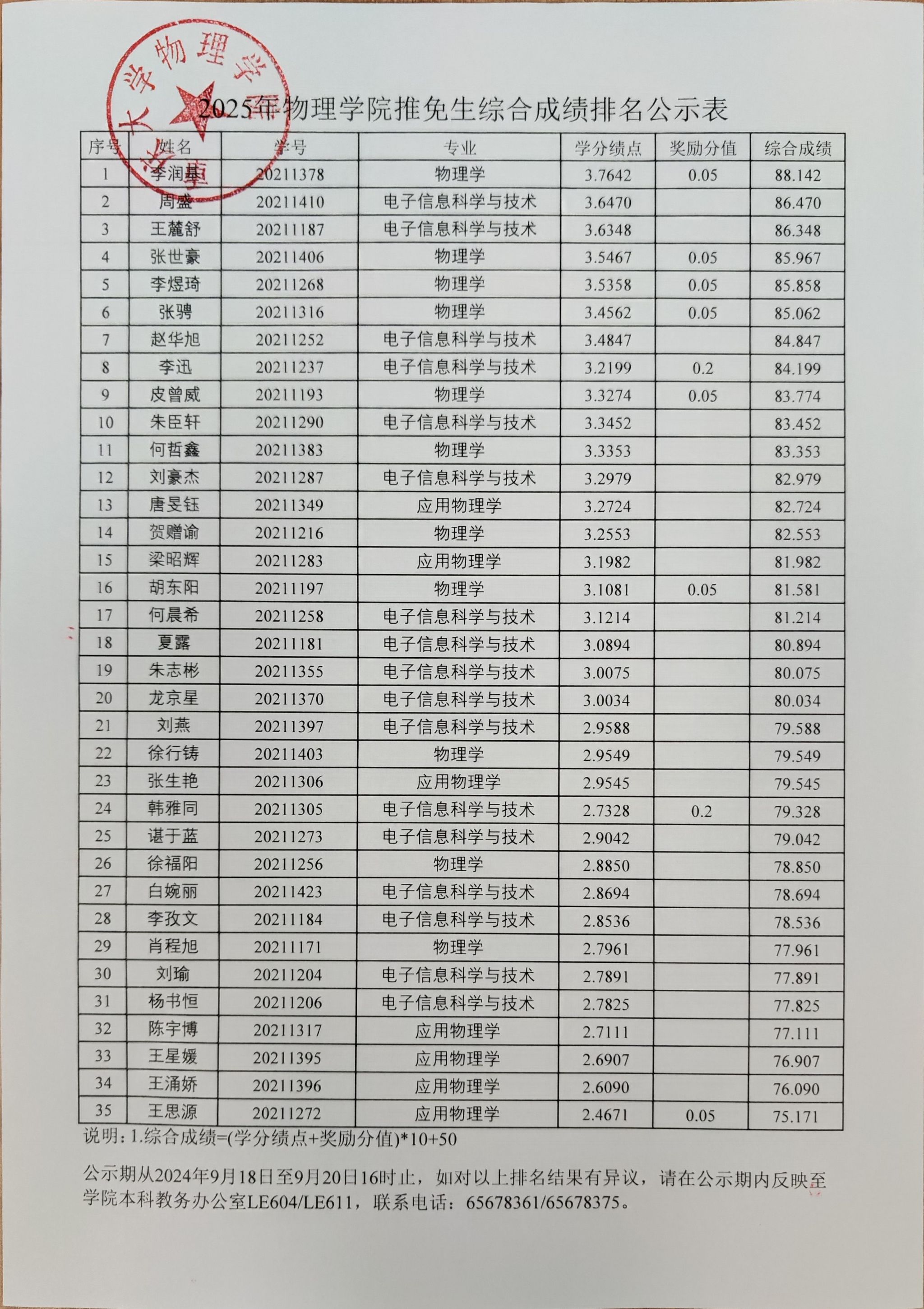 根据学校《开云登陆入口开展2025年推荐优秀应届本科毕业生免试攻读研究生工作的通知》和《开云online(中国)本科毕业生推荐攻读研究生实施细则》的相关规定,经过报名、初审、公开答辩程序,现将开云online(中国)2025年推免生综合成绩排名予以公示: