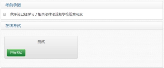 如图 13 所示,考生在正式考试前需进行考前承诺(由考试组织方提供)。一切准备就绪后点击“开始考试”按钮,便可进行考试。