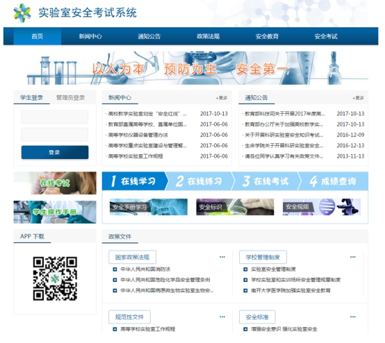 本系统可根据各高校的实际情况,设置考试相关的内容,调整、修改题库和试题具有安装方便、操作简单、适用性强,知识涵盖面广等特点,适用于高校开展实验室安全培训与考试工作。