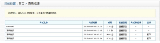 考生在本模块可以查看考生成绩、查看答卷以及打印证书。